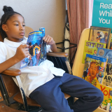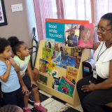 Community Bookshelf is an outreach program that creates reading spaces in community locations such as clinics, barbershops, senior living facilities, and laundromats.