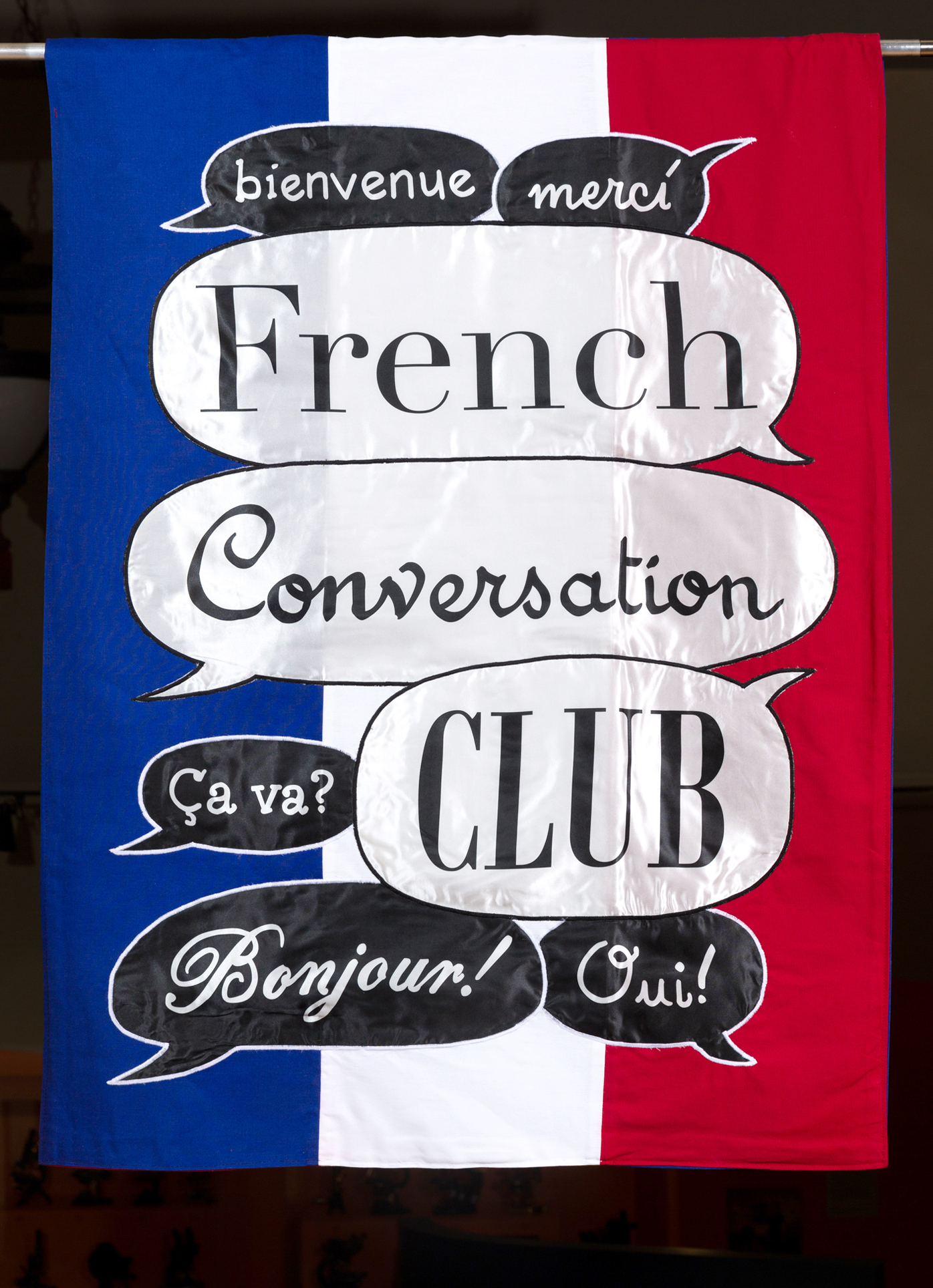 In newly commissioned works, artist Christine Wong Yap seeks to highlight the sense of belonging that many patrons of the Los Angeles Public Library get from their participation in library-based clubs and regular programs, both online and in person. Seven original banners represent groups or communities that meet at a library branch, with the name of the group on the front and a representative quote from a participant on the back.