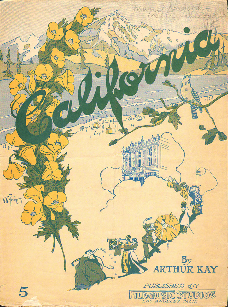 “Songs in the Key of L.A.,” an exhibit of historic sheet music covers from the Los Angeles Public Library’s collection, offers a rare view of the powerful role music has played in defining the image of Los Angeles and Southern California. Presented in conjunction with the Library Foundation of Los Angeles, the exhibit is free and open to the public.